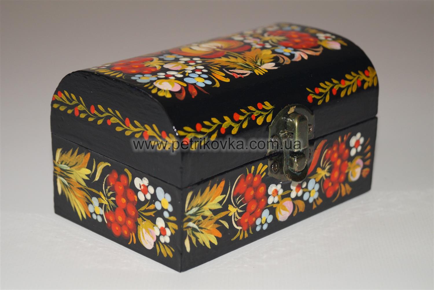 Шкатулка ручной работы, украшенная традиционным украинским узором, - замечательный подарок для девушек. У каждой представительницы прекрасного пола найдется то, что она захочет положить в эту красивую деревянную шкатулку. Она расписана масляными красками и покрыта лаком. Техника, в которой декорировано изделие, называется Петриковская роспись. Это настоящая культурная гордость Украины!
