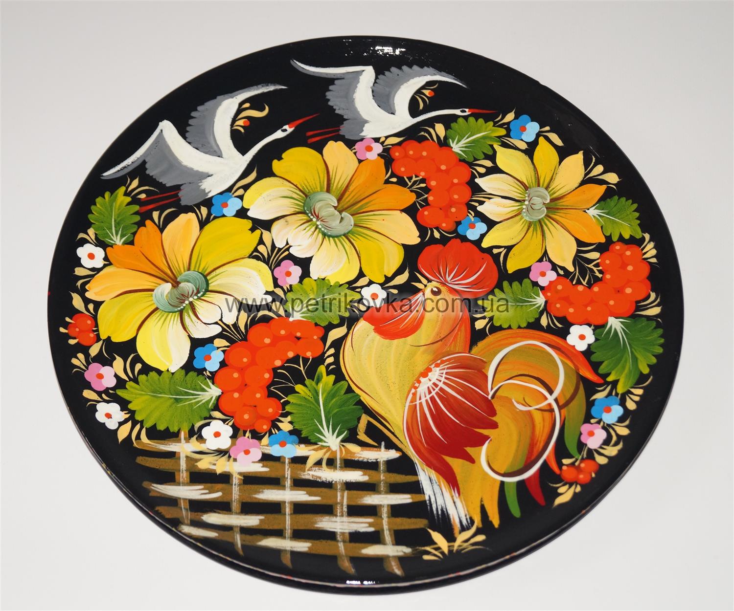 Большой деревянный круглый поднос Петушок - Аисты -Цветы