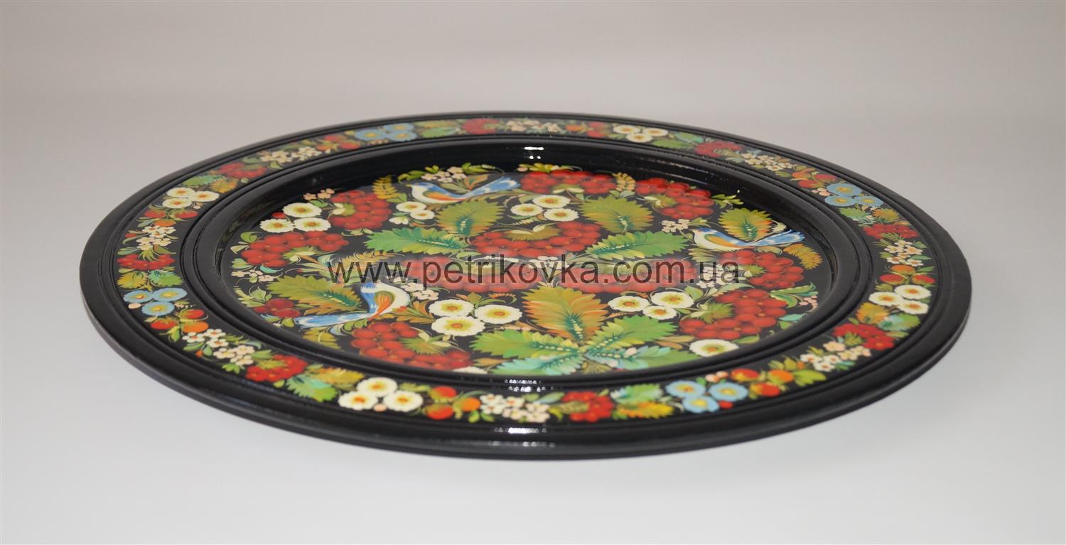 Большая настенная тарелка из дерева - отличный выбор для декора дома в славянском стиле. Изделие вырезано из липы и расписано масляными красками вручную. Сверху его поверхность покрыта лаком. Декоративную тарелку легко повесить на стену благодаря петельке с обратной стороны.