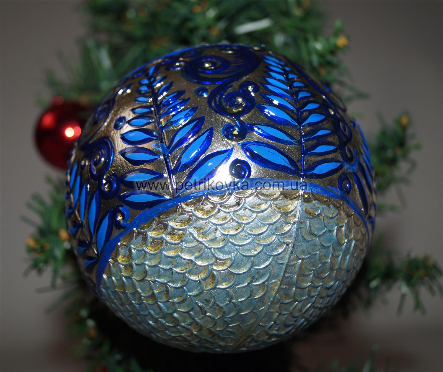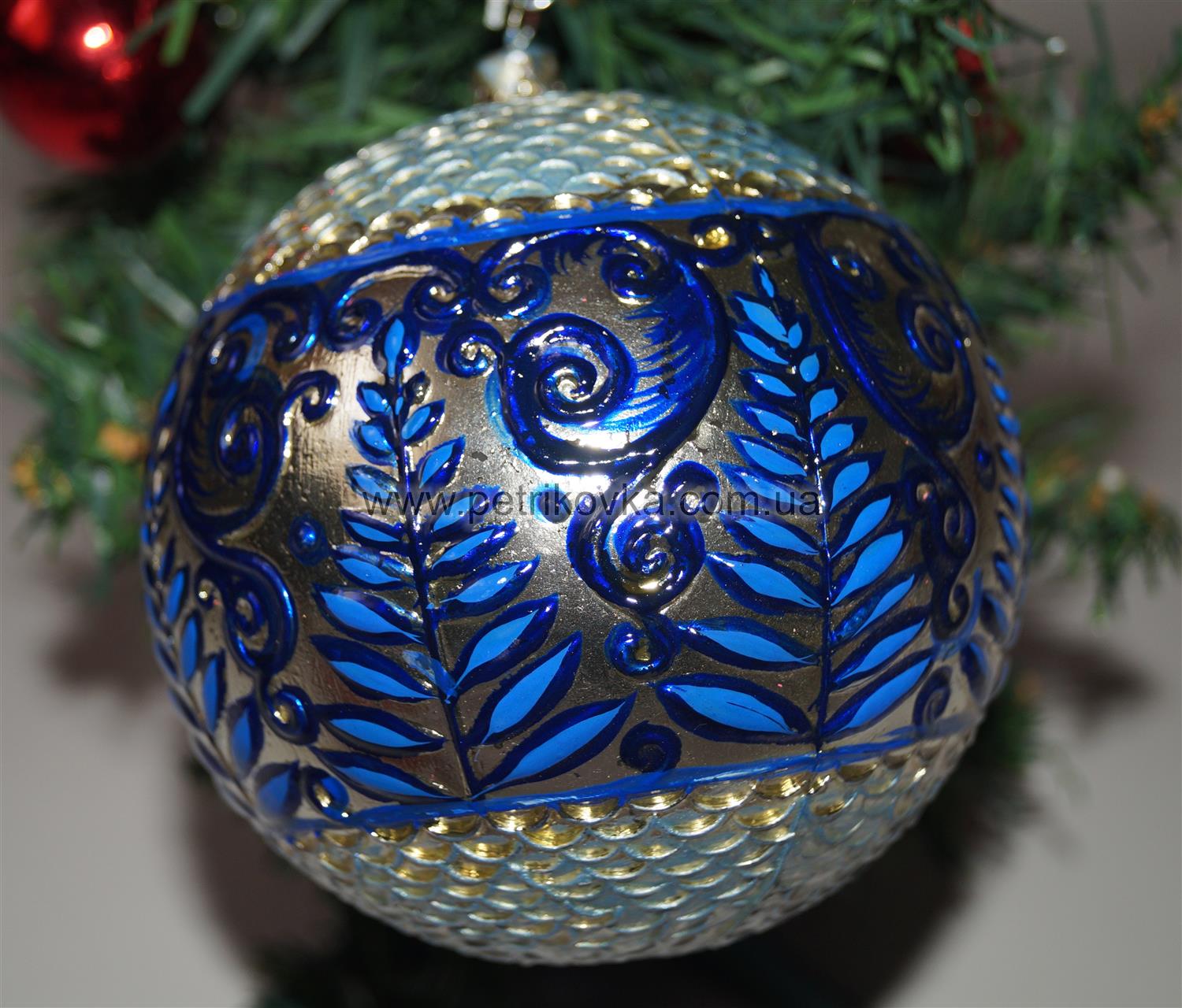 Этот красивый декорированый Шар в украинском стиле. Расписана вручную с помощью масляных красок в стиле Петриковской росписи. Это традиционный для Украины вид орнаментальной живописи. Игрушка изготовлена из пластика. Это прекрасный подарок на новогодние праздники. Игрушки ручной работы будет радовать своих новых хозяев каждый год.
