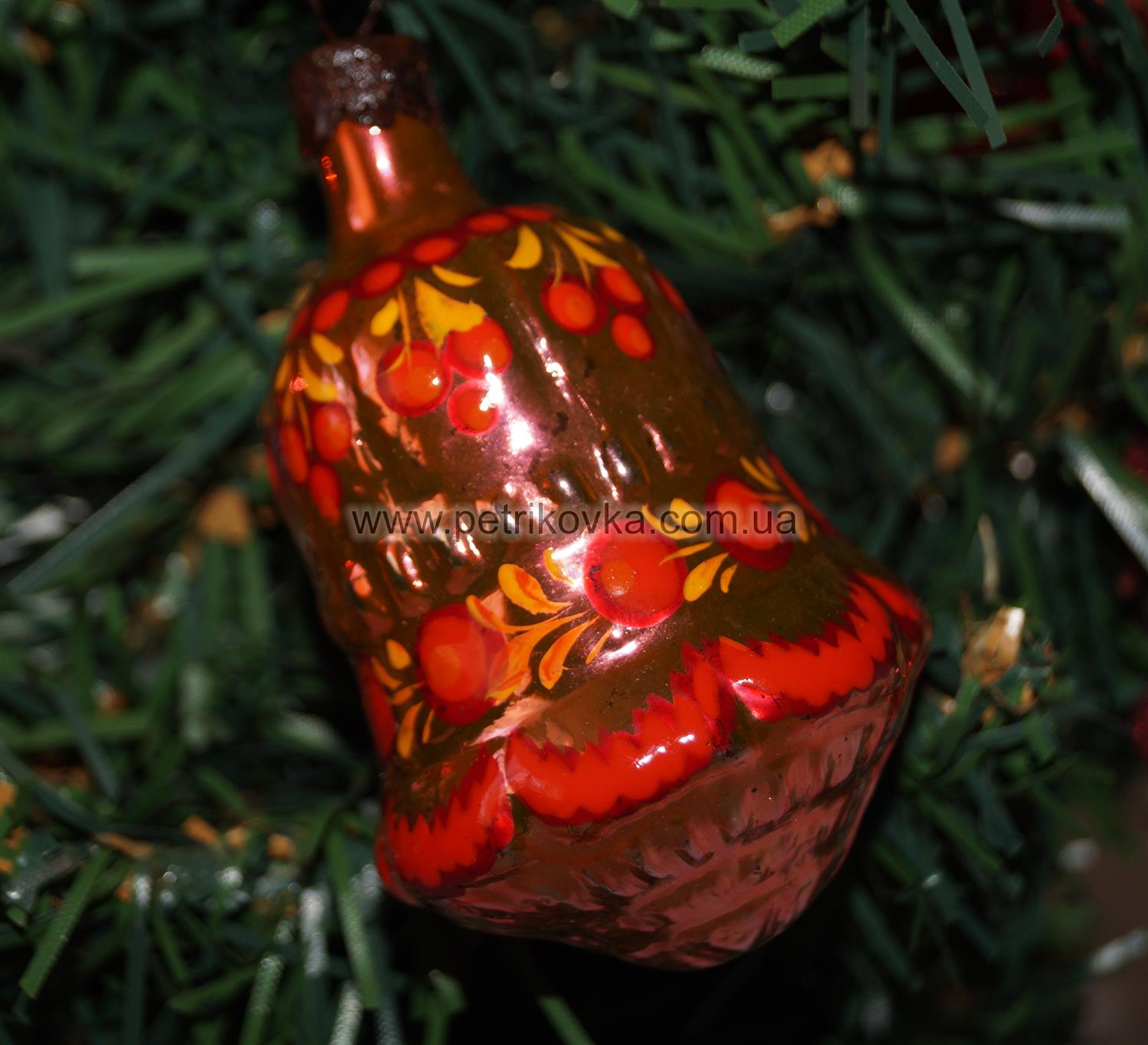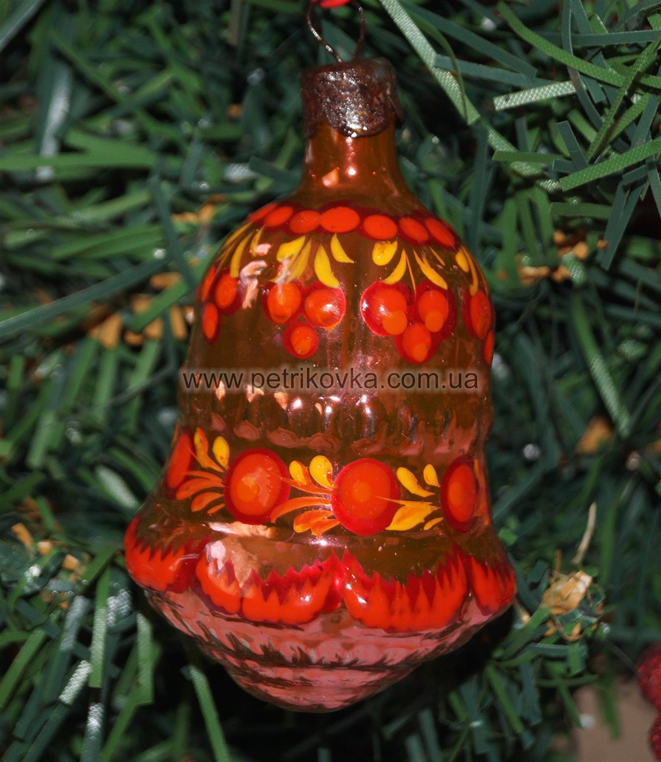 Эта красивая декорирована игрушка в украинском стиле. Расписана вручную с помощью масляных красок в стиле Петриковской росписи. Это традиционный для Украины вид орнаментальной живописи. Игрушка изготовлена из стекла. Это прекрасный подарок на новогодние праздники. Игрушки ручной работы будет радовать своих новых хозяев каждый год.